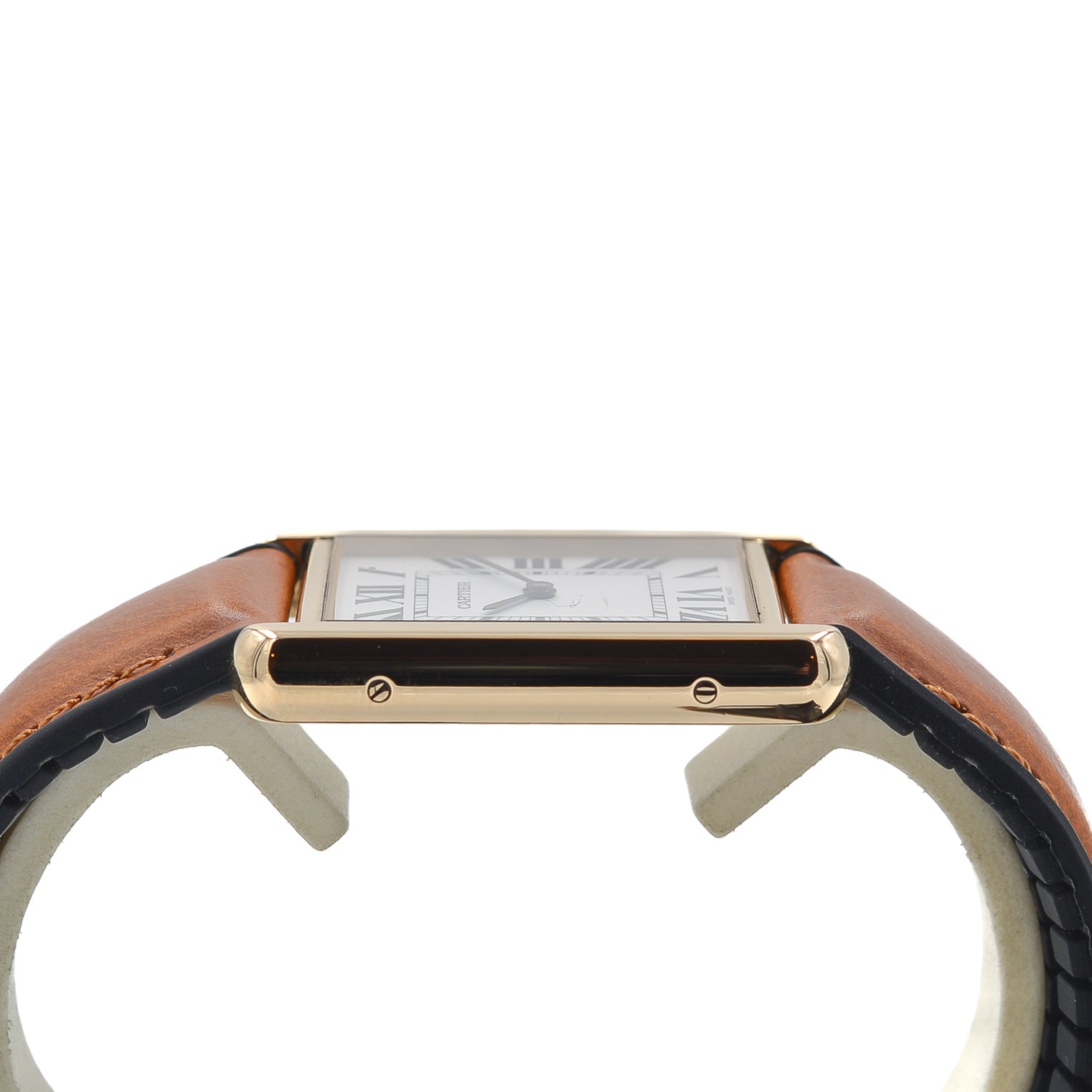 Armband: neues Lederband, org. Cartier Dornschließe 18kt.